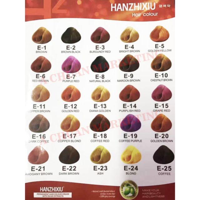 Hanzhixiu hair color cream is a true revolution in proessional hair colour the base of hanzhixiu colour cream is an emulsion that combines true cinditioning and is blended todeliver the most beautiful results the special formulation colour cream contains a controlled percentage of dye intermediates allowing balanced penetration of colour pigments resulting in briliant long lasting results.